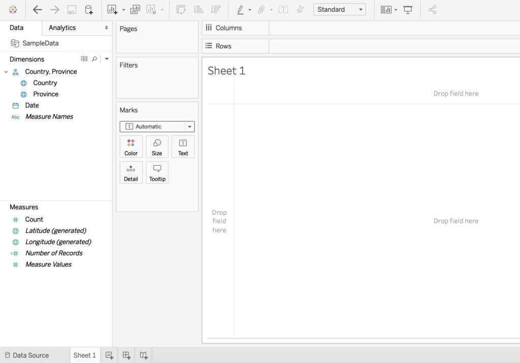 จะเห็นว่า Marks มีก้อน Country กับ Province โผล่มา และ Columns กับ Rows ด้านบนจะเป็น Generated Longitude/Latitude ทันที
